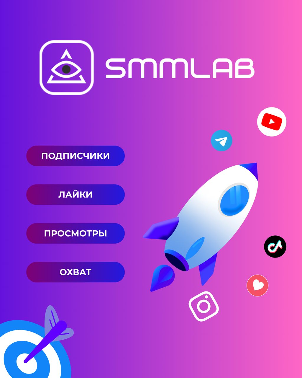 SMM LAB Накрутка Instagram, Telegram, TikTok, YouTube и др.